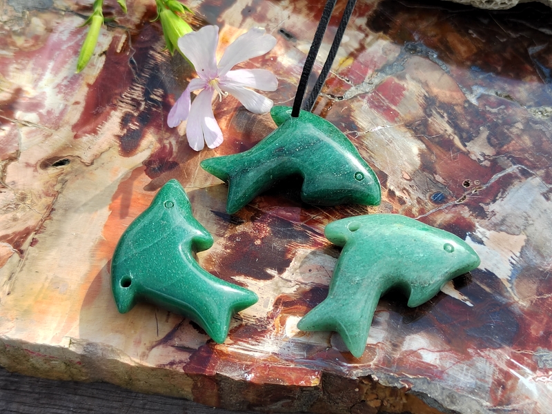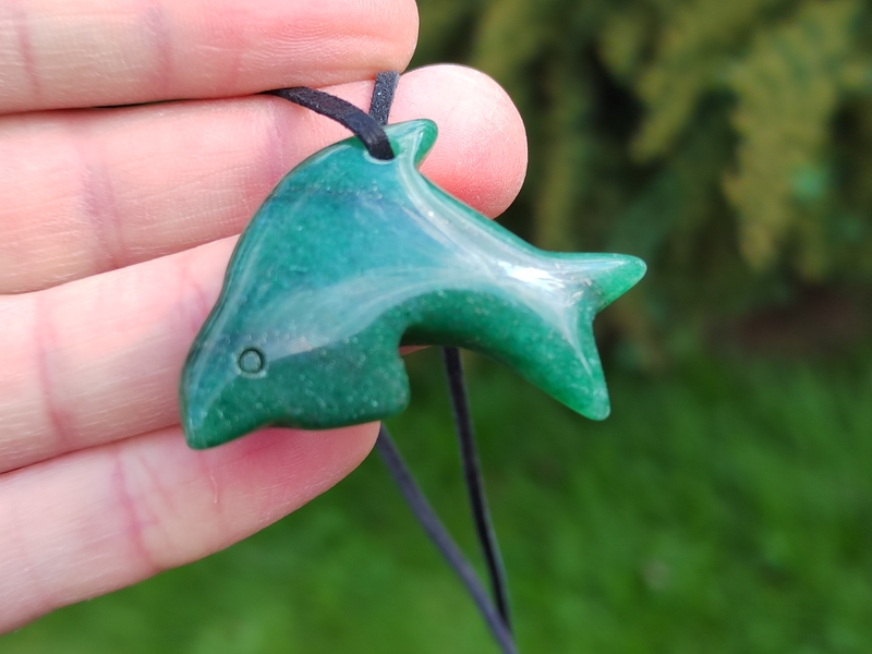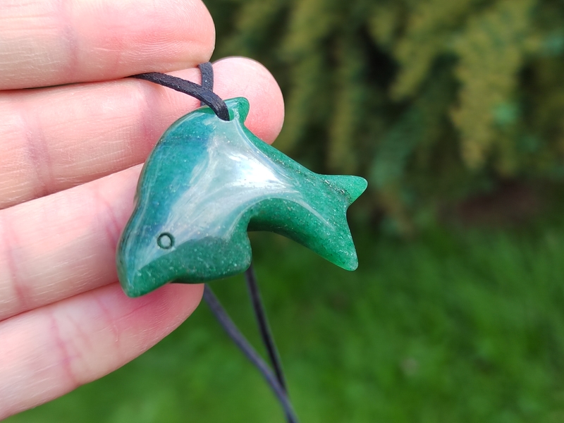 Krásný leštěný avanturín ve tvaru DELFÍNA s dírkou na zavěšení jako šperk nebo do prostoru (např. do dětského pokoje). Obdržíte delfínka náhodným výběrem viz foto.