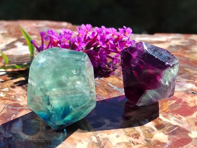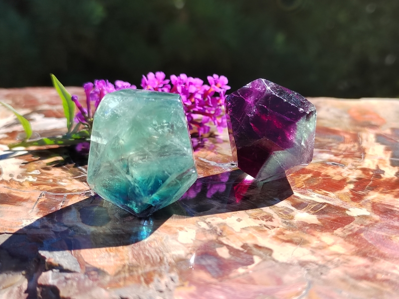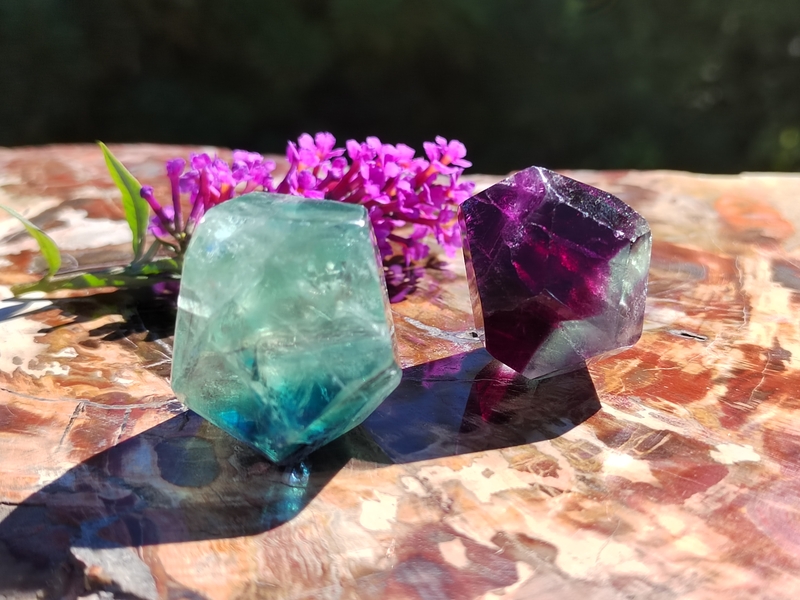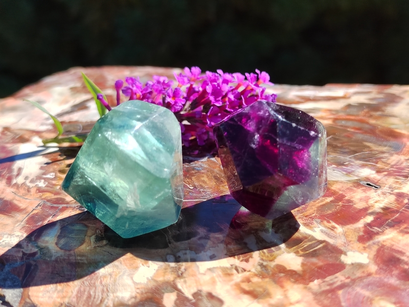 Nádherný fialový a zelený fluorit leštěný ze všech stran SET 2 KUSŮ s krásnými duhovými odlesky. tzv. freeforma. Šíří moc hezkou radostnou energii. Minerál stojí samostatně, záleží jakou stranu si vyberete. Fluorit pomáhá sladit naši duševní a fyzickou složku bytí, přináší klid a optimismus, zároveň rozhodnost, sílu, energii. Fluorit pomáhá sladit naši duševní a fyzickou složku bytí, přináší klid a optimismus, zároveň rozhodnost, sílu, energii.