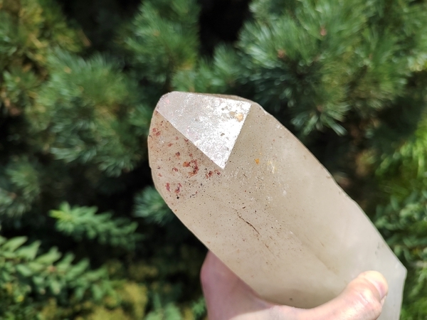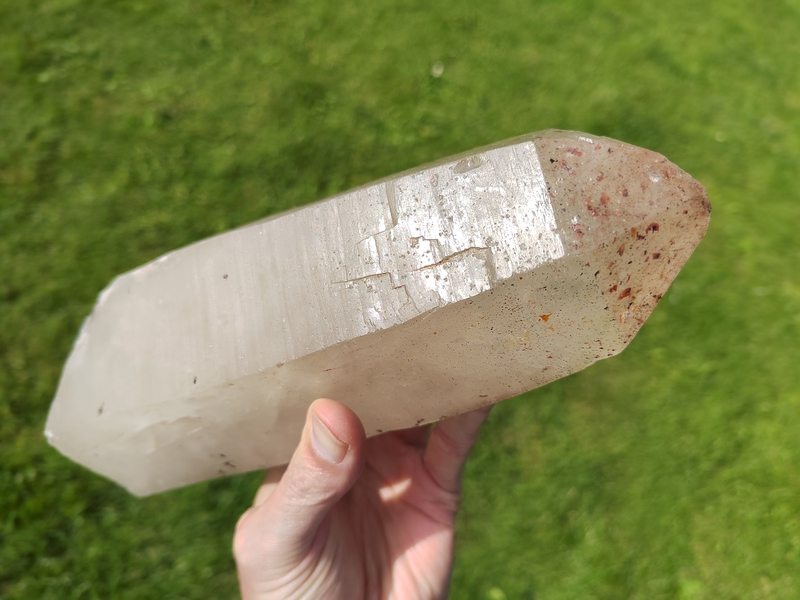 Zajímavá přírodní špice křišťálu/křemene s mírnou příměsí hematitu u vrcholu minerálu. Nazvali jsme ho podle jeho vibrací a síly ENERGETICKÝ PARŤÁK. Dokáže rozproudit a usměrnit energetické toky a také zprostředkovat propojení do jiných časoprostorů a dimenzí, i pradávné historie Země. Díky hematitové složce nese výborné ukotvovací vlastnosti. Tento mistrovský krystal s lemurskou esencí má na sobě zajímavé záznamové struktury. Bude skvělým osobním krystalem.
