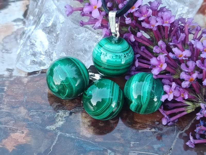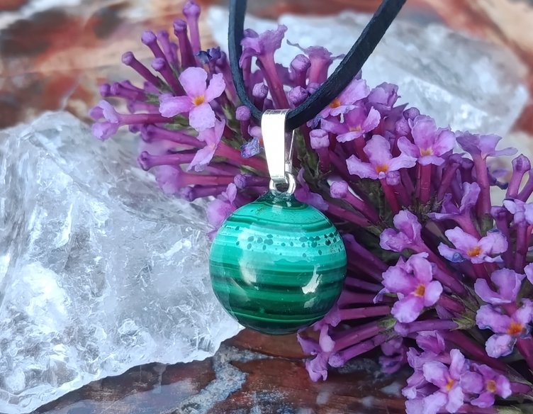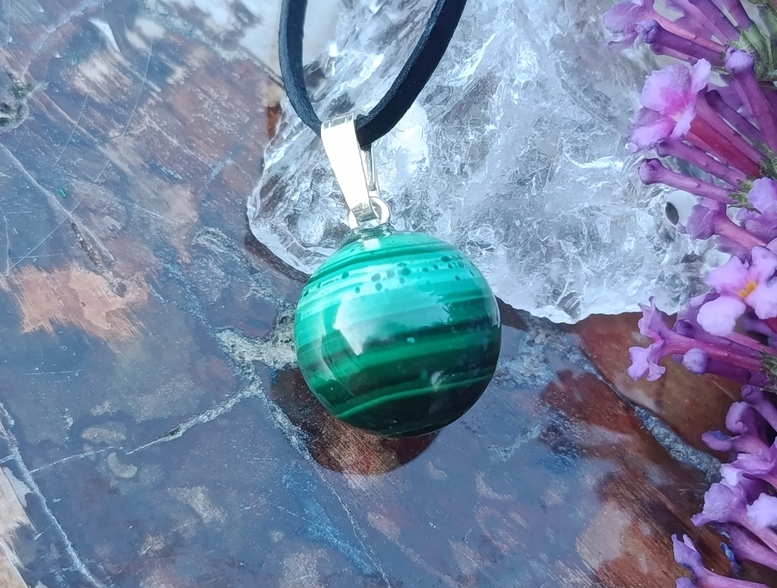 Krásná malachitová kulička uchycená do přívěsku, abyste ji mohli mít vždy s sebou.