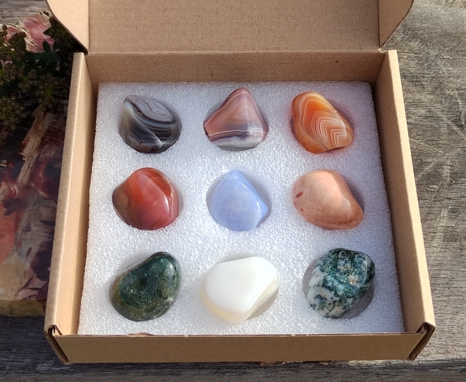 Sbírka achátů tromlovaných box - SVĚT 15 x 13 cm