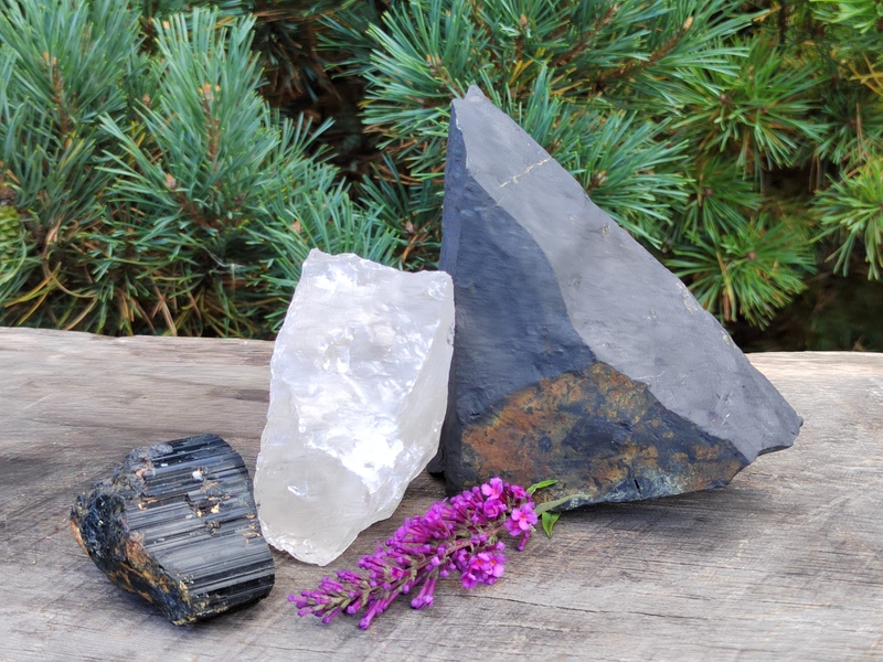 Šungit, křišťál, turmalín surový SET 3 ks, 1133 g - HARMONIE DO PROSTORU